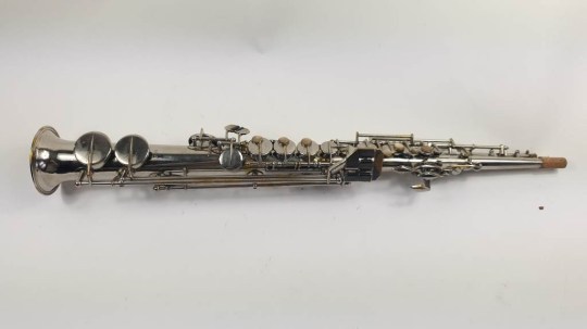 Deze sopraansaxofoon is net gereviseerd met zwarte polster, heeft gerolde toongaten en heeft een mooi volle warme klank. Je krijgt een jaar garantie.